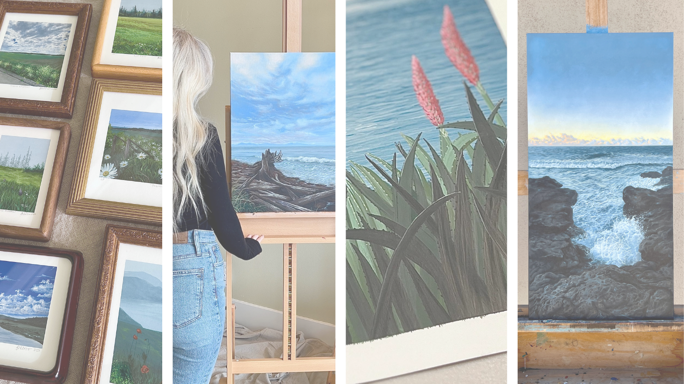 A West Coast artist, splitting her time between California and Washington. As a native of the Pacific Northwest, Alex’s childhood was surrounded by beautiful beaches, ocean views and picture perfect skies. It’s for this reason she has always been drawn to the coastal life.